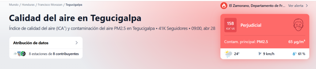 Actualmente, Tegucigalpa registra una concentración de PM2.5 que supera en 11.5 veces los límites máximos recomendados por la Organización Mundial de la Salud (OMS).