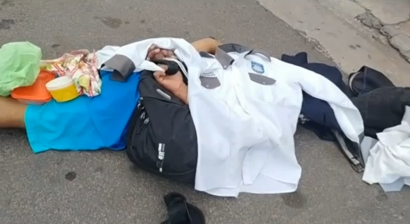 El individuo portaba una mochila en la que se encontraron varios objetos, entre ellos, un uniforme de guardia de seguridad y una lonchera con alimentos.