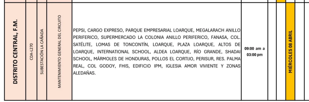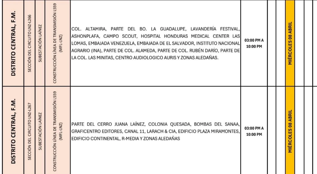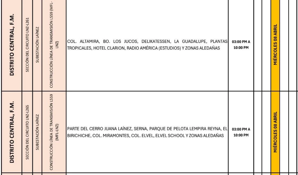 La Empresa Nacional de Energía Eléctrica (ENEE) anunció que este miércoles 8 de abril se realizarán interrupciones programadas del servicio eléctrico en distintas zonas del país, como parte de trabajos de mantenimiento en la red.