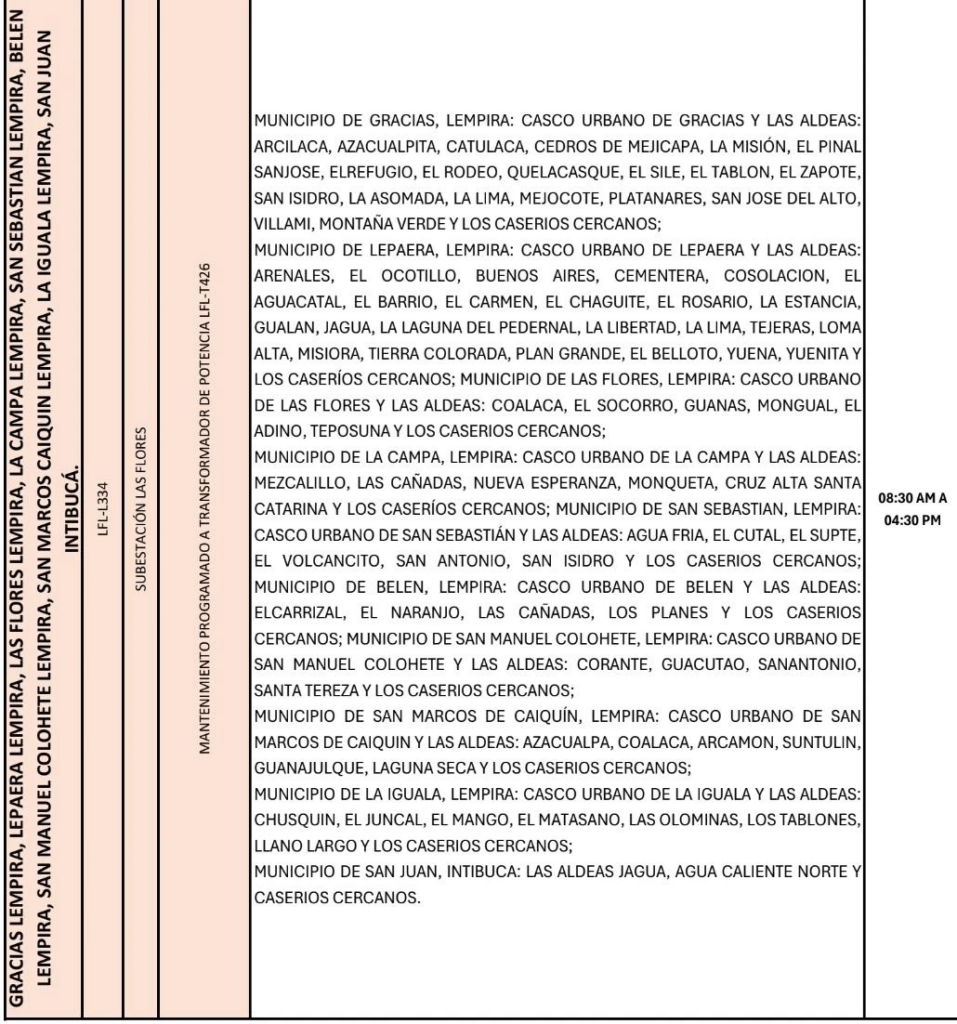 Cortes de energía de hasta 7 horas afectarán varias regiones de Honduras este miércoles