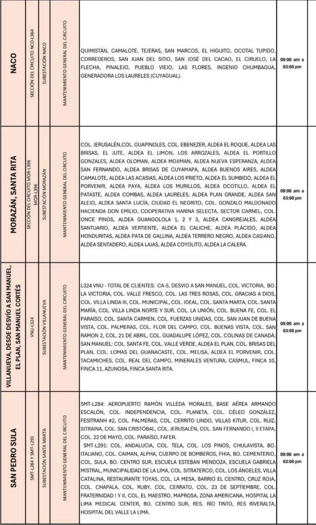 Morazán y Santa Rita (Yoro) 09:00 am a 03:00 pm