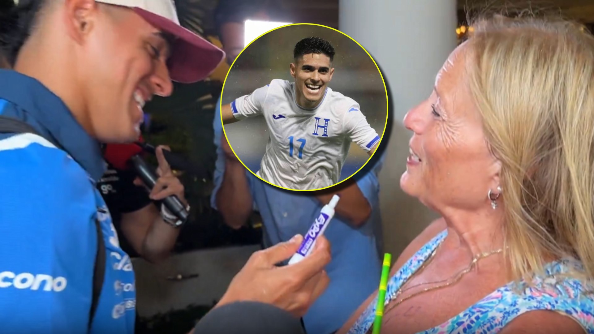 En un video difundido por medios de comunicación nacionales, se observa a la fanática acercarse al futbolista hondureño y entregarle un marcador, mientras le señala el pecho para que estampe allí su firma.