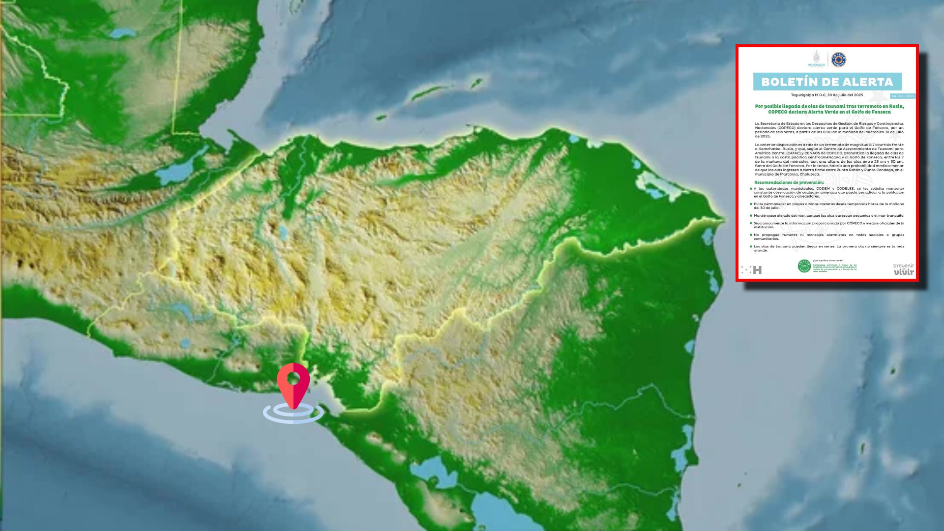 🚨 #HechosDigital | ¡Atención!📢 Por posible llegada de olas de tsunami tras terremoto en Rusia, Copeco declara alerta verde en el Golfo de Fonseca🟢.