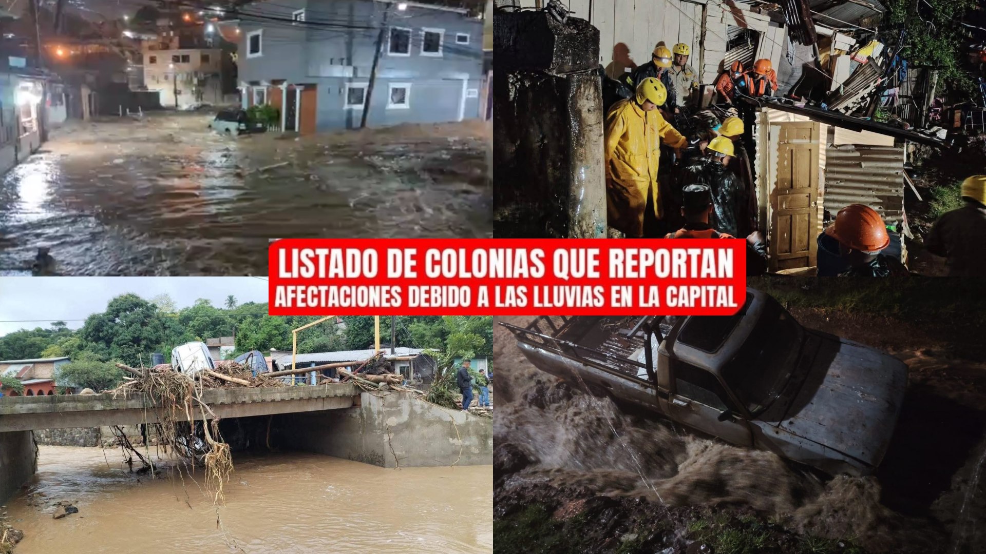 Listado de colonias afectadas en el Distrito Central por las intensas lluvias