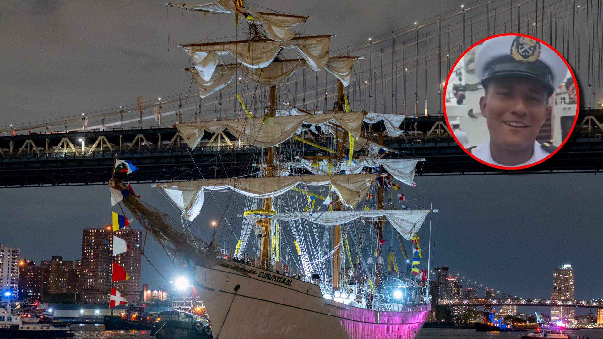 Minutos antes de la tragedia, así saludaban los tripulantes del buque escuela "Cuauhtémoc" a sus familiares y amigos previo al choque en el puente de #Brooklyn, en #NuevaYork, #EstadosUnidos.