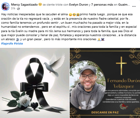 Se conoció además que Fernando Durón Velásquez se había graduado como ingeniero en la Universidad Nacional de Agricultura de Honduras, lo que aumentó las muestras de pesar entre quienes lo conocieron.