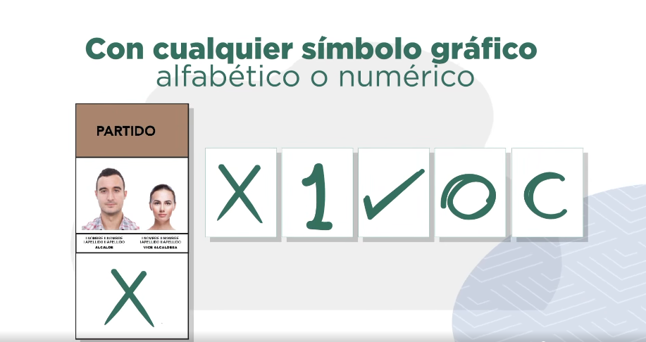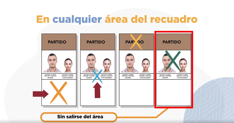 En las boletas para presidente y alcaldías, solo se permite una marca clara en un solo recuadro. Por ejemplo: